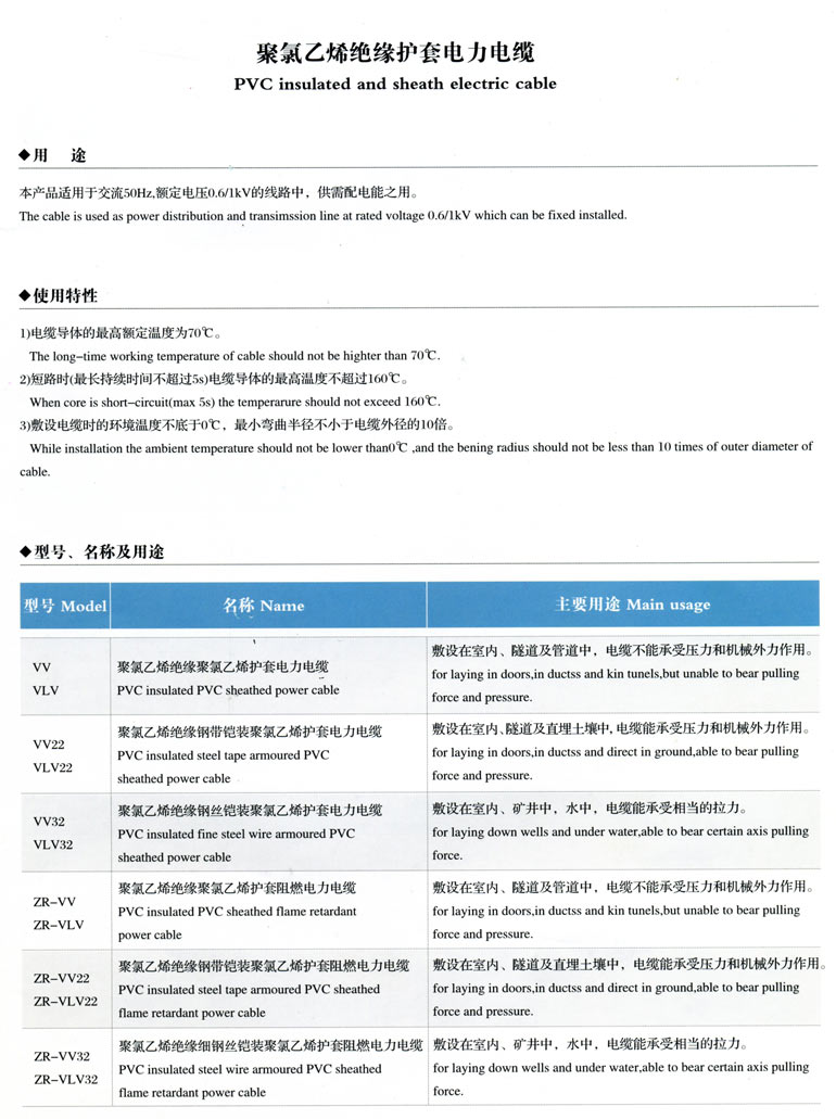 1、聚氯乙烯絕緣護(hù)套電力電纜