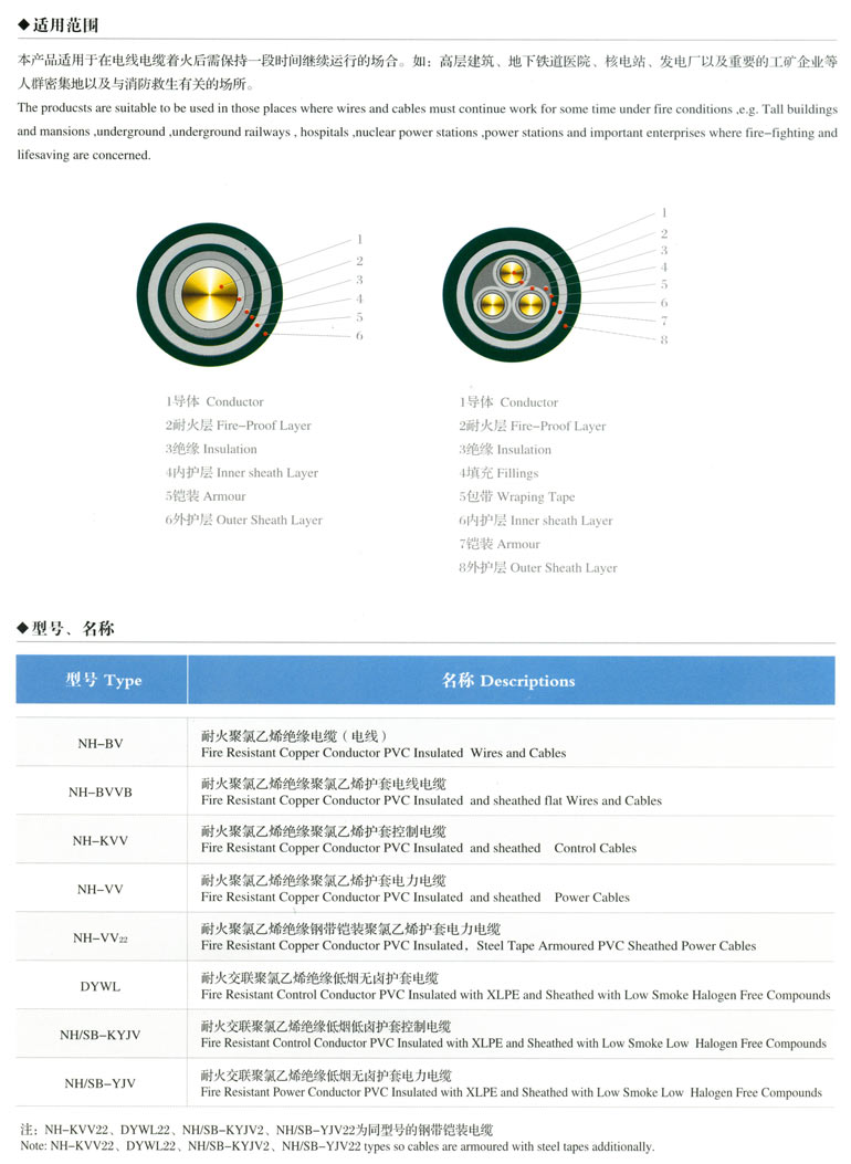 3、交聯(lián)聚乙烯、聚氯乙烯絕緣護(hù)套耐火電力電纜