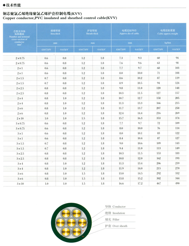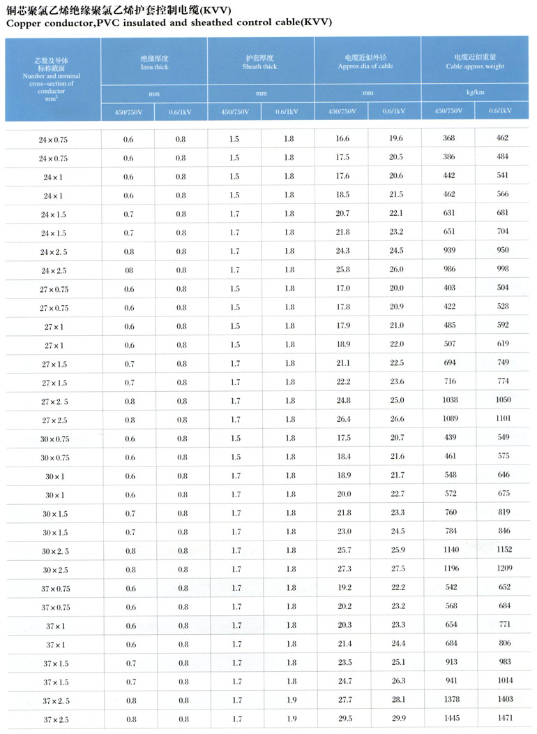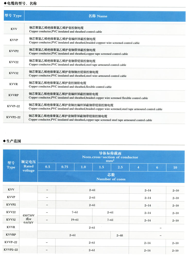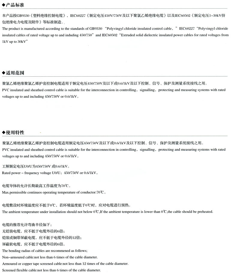 1、聚氯乙烯絕緣護套控制電纜