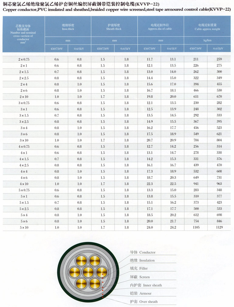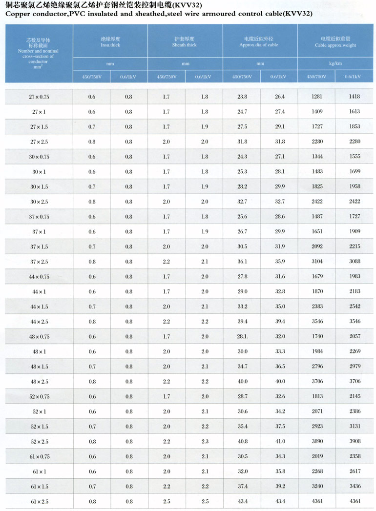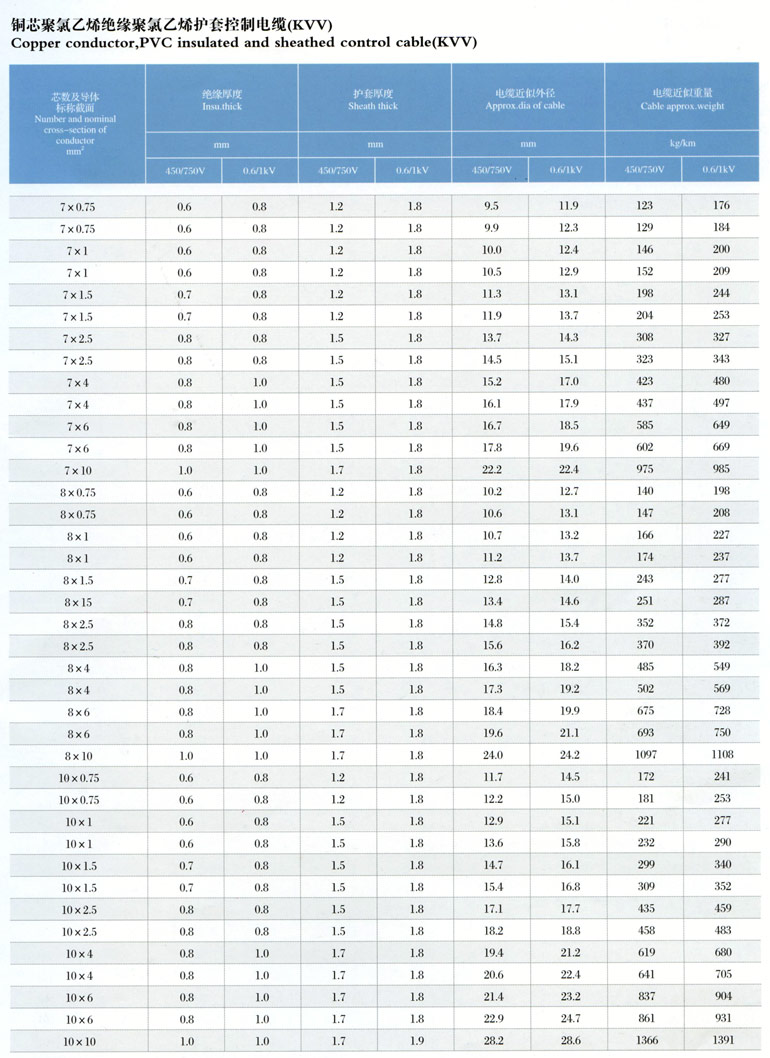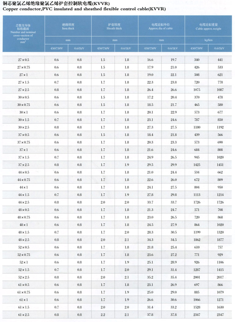 1、聚氯乙烯絕緣護套控制電纜