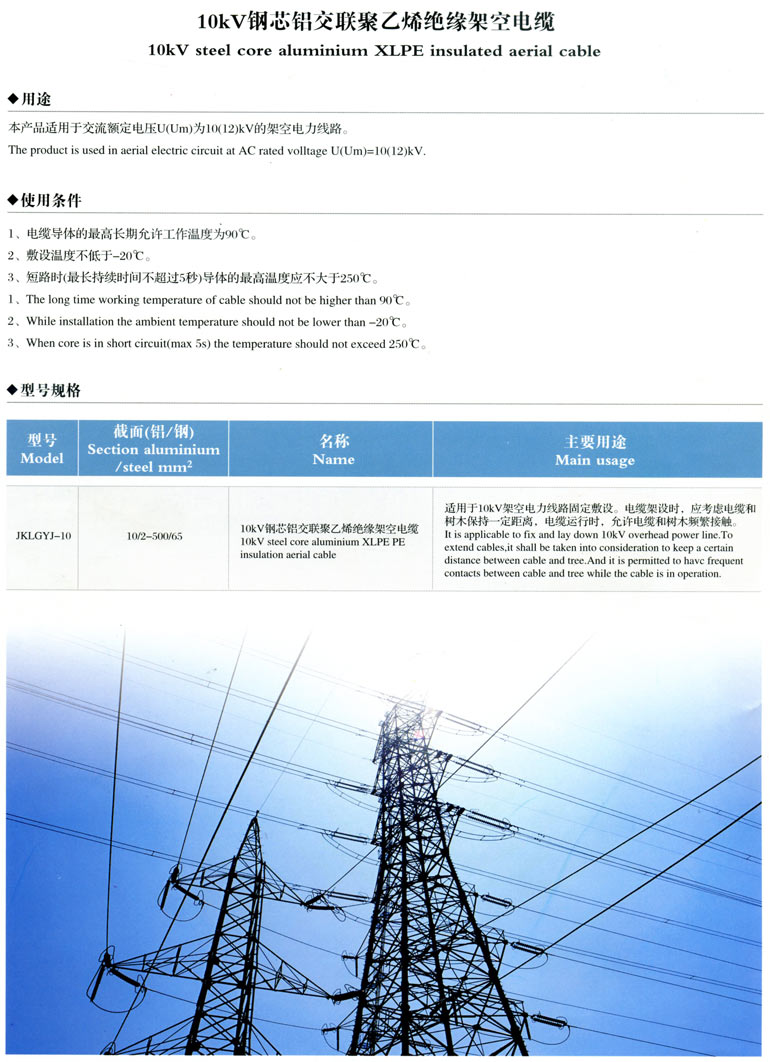 3、10kv鋼芯鋁交聯(lián)聚乙烯絕緣架空電纜