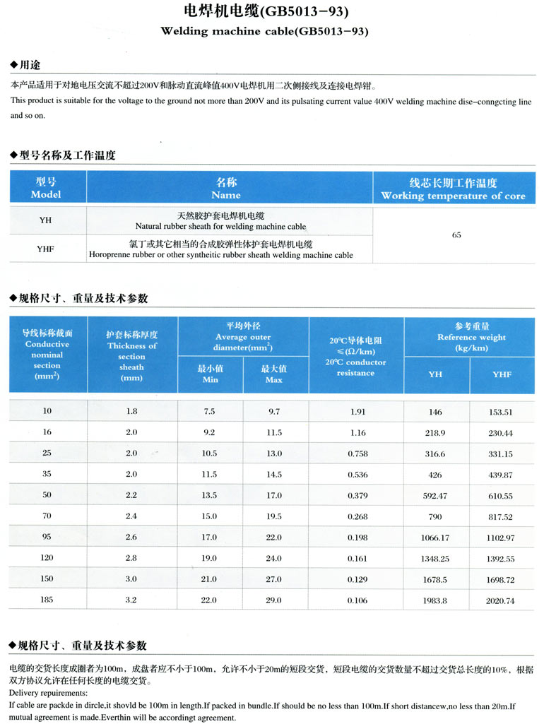 2、電焊機電纜(GB5013-93)