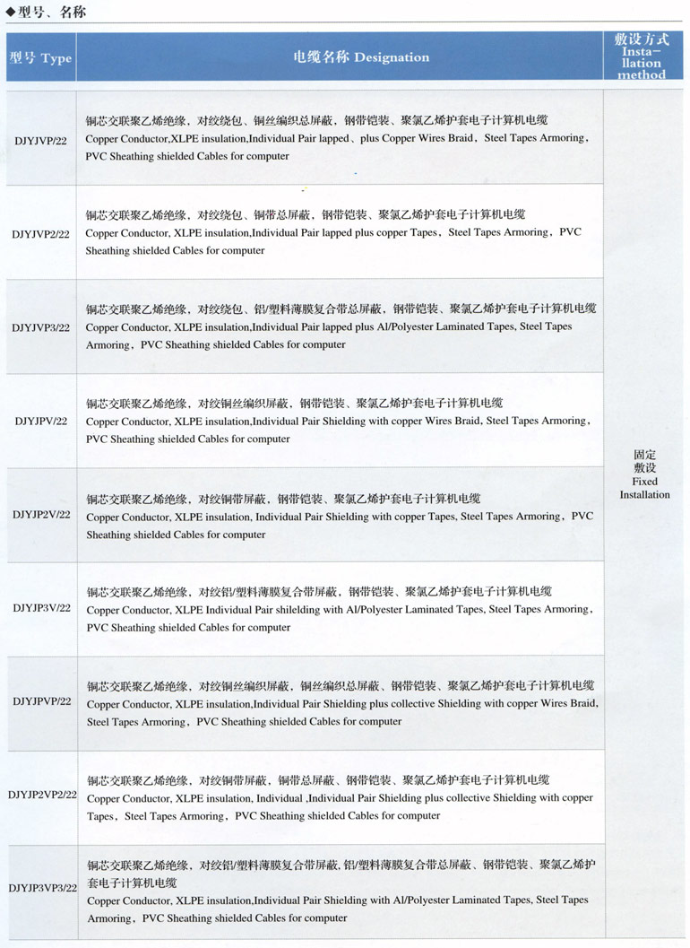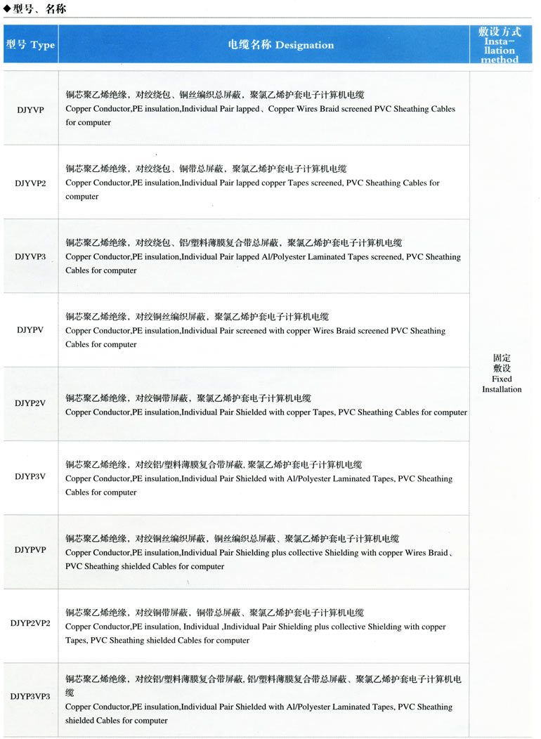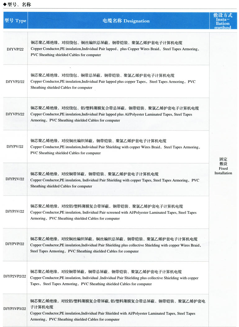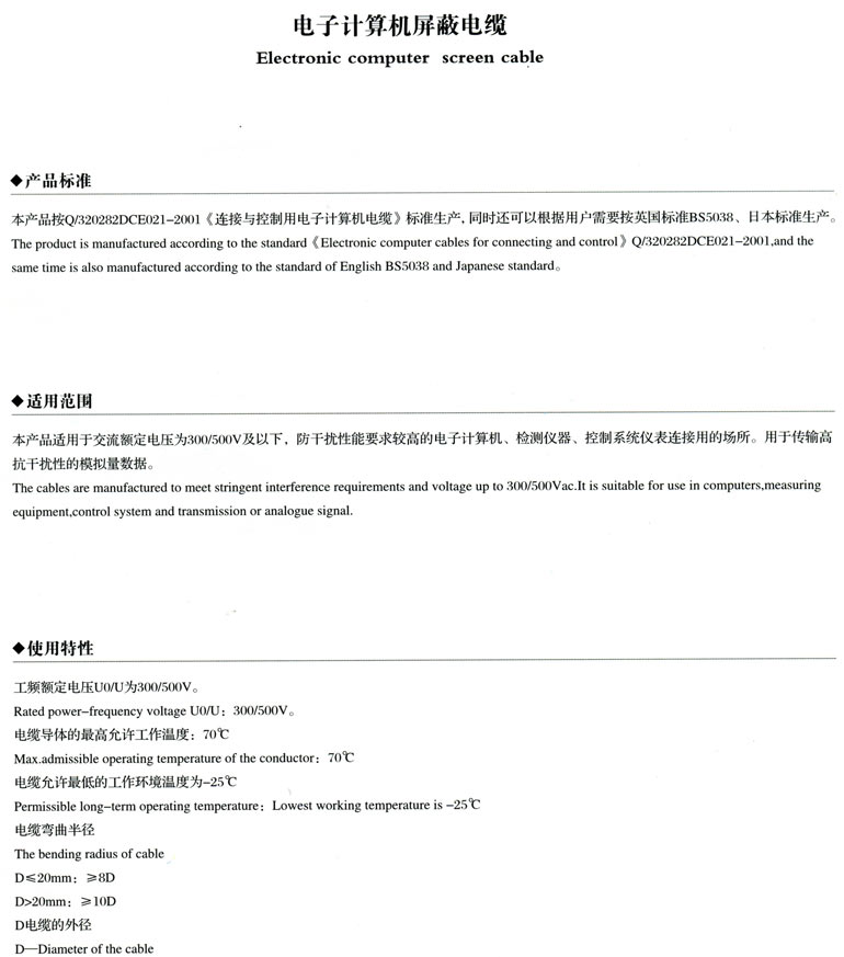 1、電子計算機屏蔽電纜